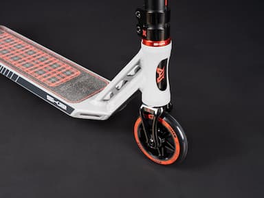 Благодаря надёжным подшипникам ABEC 9 и прочной конструкции, этот самокат обеспечит стабильность и безопасность во время выполнения трюков. Руль и вилка изготовлены из лёгкого и прочного алюминия, что гарантирует комфорт и точность управления.